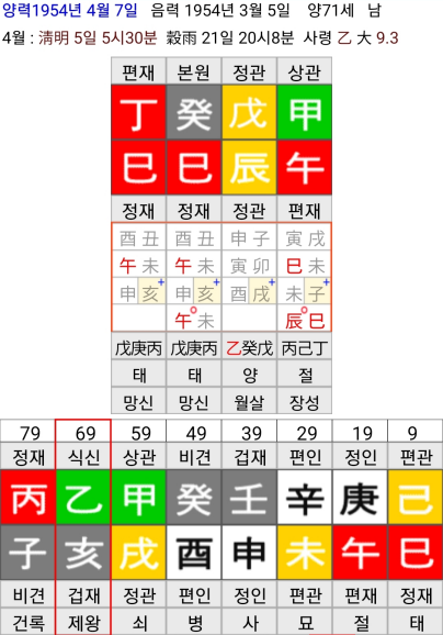 위의 명조는 그다지 특별해 보이지 않아서 영화계를 주름잡았던 인기 영화배우겸 감독의 명조에는 어울려 보이지 않아 검색해보니 아래의 명조도 나와 있어서 더 적합하다고 판단되어 아래의 사주를 새로운 사주 관범으로 함께 풀어 보겠습니다...