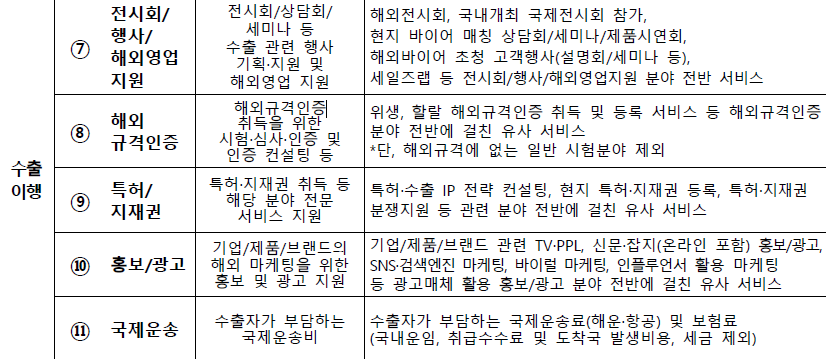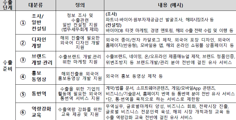 * 지원 서비스는 해외 마케팅에 필요한