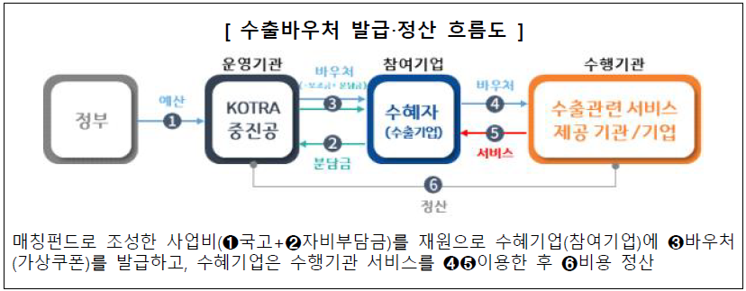 ** 수출바우처는 ‘지원금(국가보조금) + 기업분담금’으로 구성