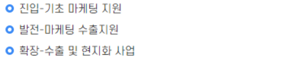 사업목적 : 1:1 해외마케팅 지원을 통해 강소·중견기업의 수출경쟁력을 강화하고 글로벌 기업으로 육성