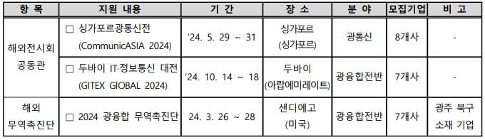 『2024년 글로벌 시장진출 지원기업 통합 모집공고』를 게재했는데,