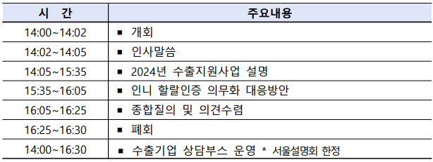 2024년 권역별 농식품 수출지원사업 설명회 개최 안내