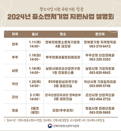 • 종합설명회(전주) : 일시 : 2024. 1. 11.(목) / 전북중기청 대강당