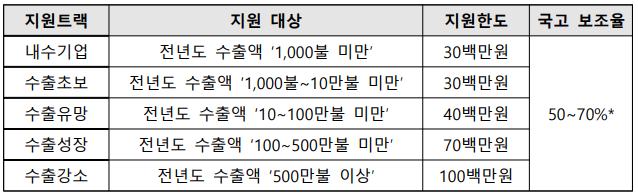 ◦ 수출액 규모에 따라 지원트랙을 구분하고