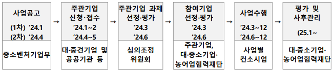 과제를 발굴하고 사업을 신청, 과제 선정 이후 중소기업 공모‧선정