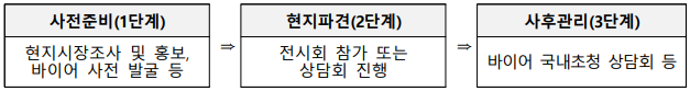 ◦ 개별 컨소시엄의 사전 ①시장조사, ②현지 파견, ③사후관리 3단계로