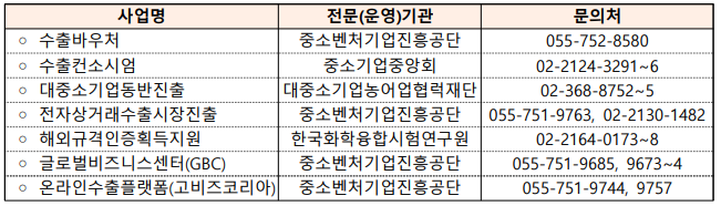 중소벤처기업부에서는 중소기업 수출확대 및 글로벌화를 지원하기 위해