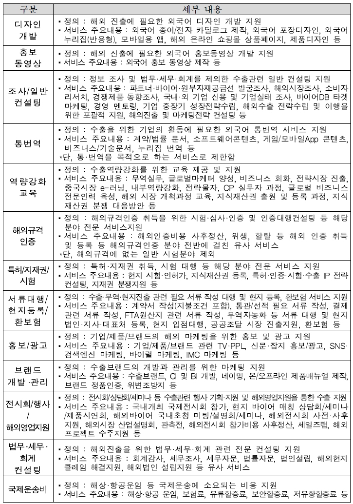 수출바우처 세부 프로그램(마케팅 서비스 메뉴판)
