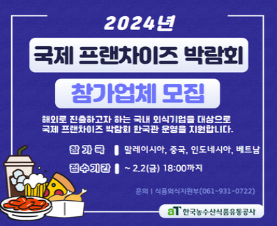 2024년 국제 프랜차이즈 박람회 '한국관' 참가업체 모집 공고
